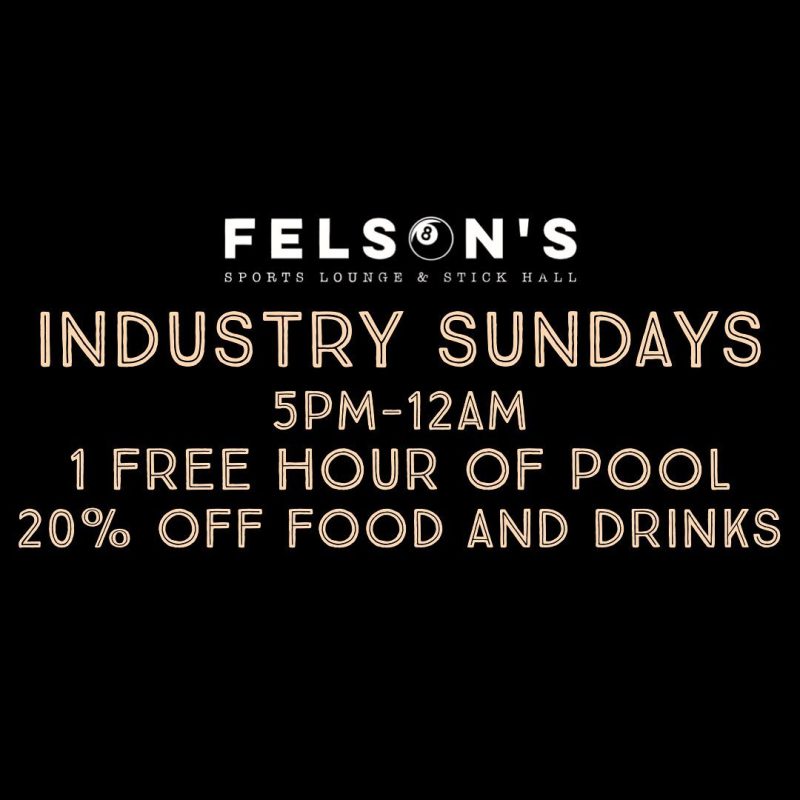 20% off food & drink Sundays + 1st hour of pool absolutely free!