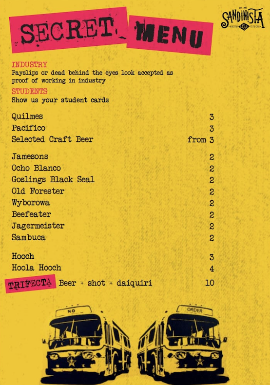 Bottle of house beer, a cocktail and a shot for £10! (+ secret industry menu!)
