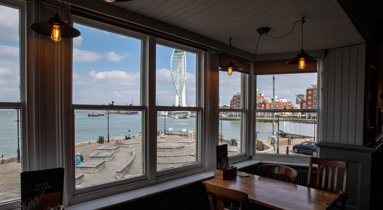 Built on the harbour front in the 1700’s, the name derives from being the first place spices from around the world landed. We were historically located just outside the gates of old Portsmouth thus was lawless and home to press gangs for Nelson’s Navy. Having just survived the ‘Blitzkrieg’ in WWII, you can still find us with the best view in the heart of historic Portsmouth.