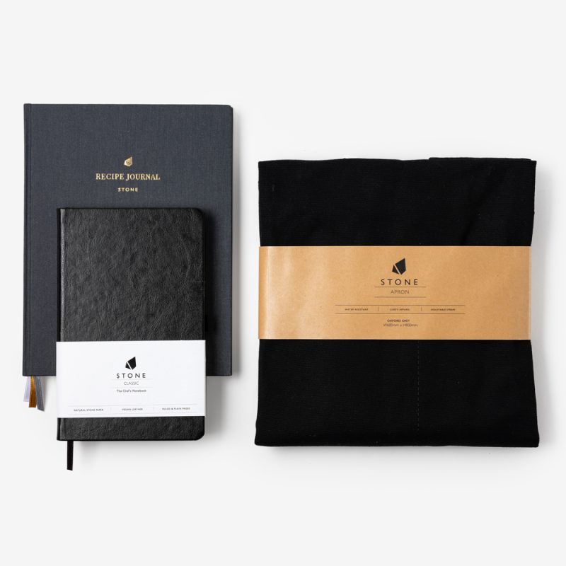 The Stone Classic is our flagship product – a 21cm x 13cm hardbound notebook made of water and greaseproof stone paper and wrapped in a robust, yet beautiful, vegan leather cover. The Classic comes with an array of bespoke features that have made it a must-have for the world’s best chefs.